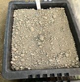 ②コンテナに土を入れ、緑肥(300g、表面がみえない程度)をすきこみ