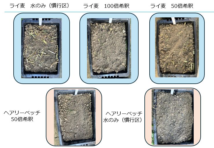 らい麦 100倍希釈、50倍希釈、水のみ(慣行区)